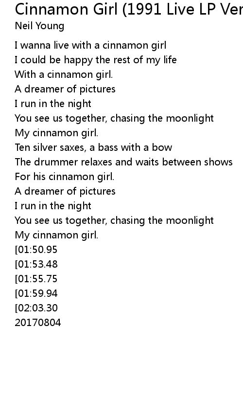 I wanna live with a cinnamon girl |