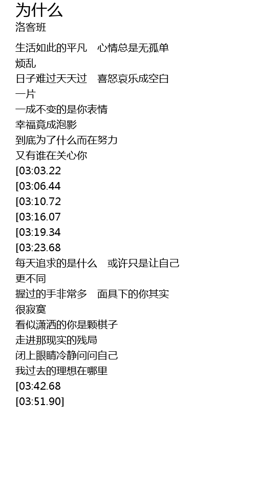 | [01:40.50][03:23.68] | 到底走到哪里哪里哪里哪里我才能够快乐 |