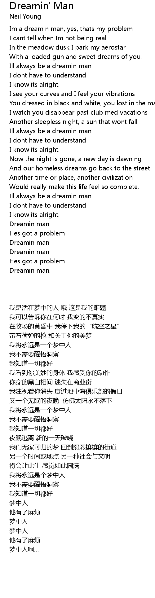Im a dreamin man, yes, thats my problem |