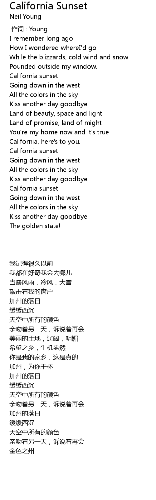 | [00:32.99] | California sunset |