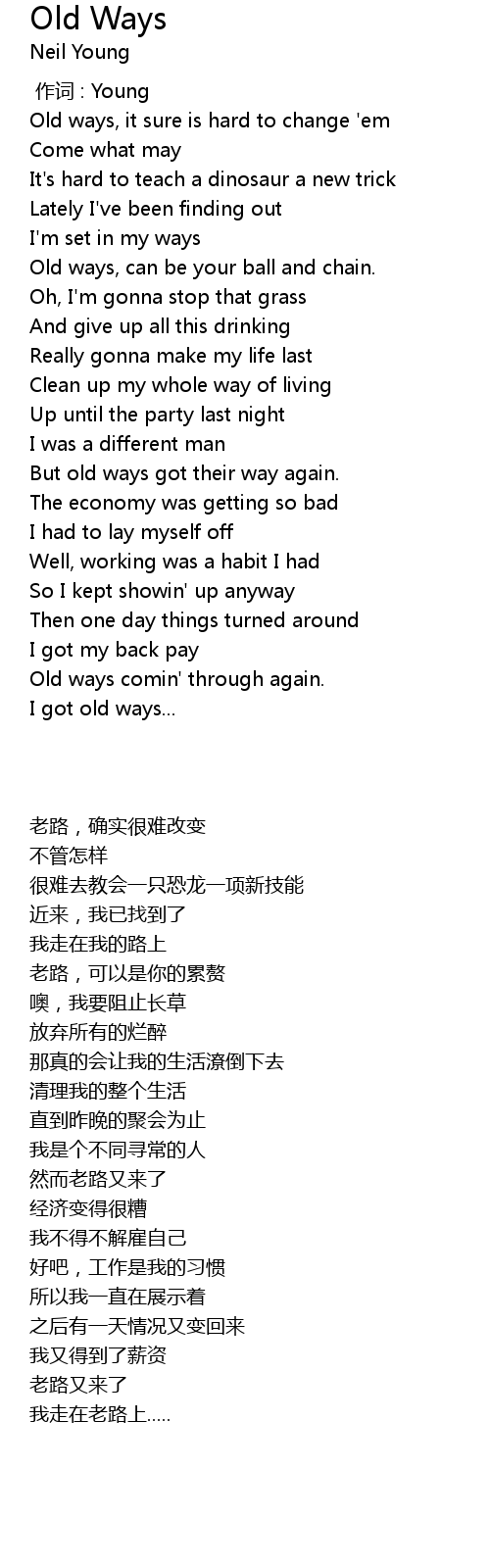 | [02:47.10] | I got old ways... |