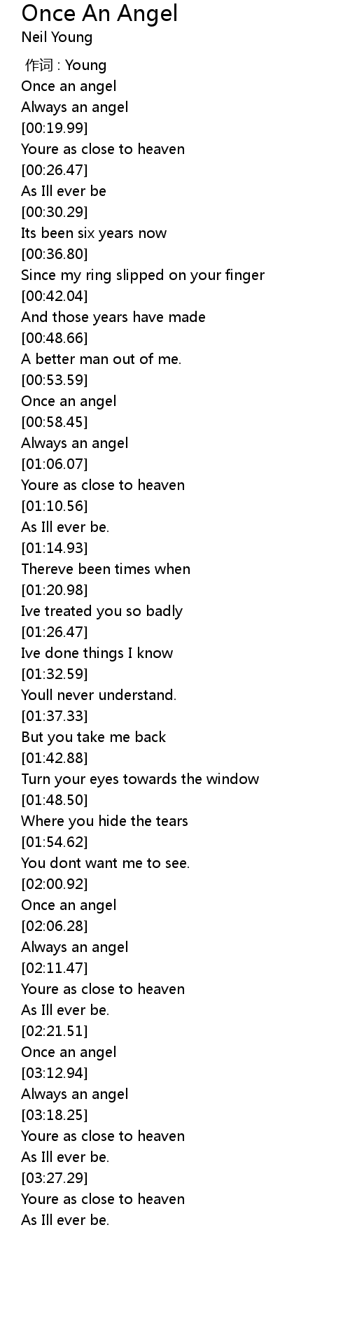 | [02:03.23] | Once an angel |