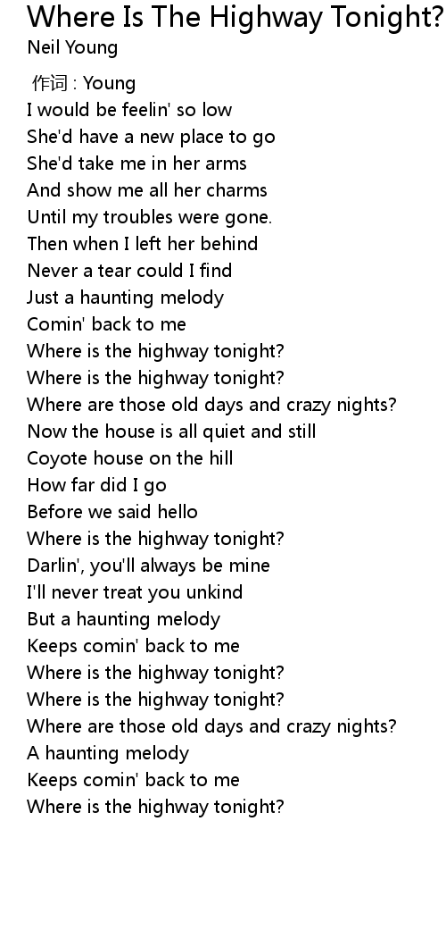 | [01:52.97] | Where is the highway tonight? |