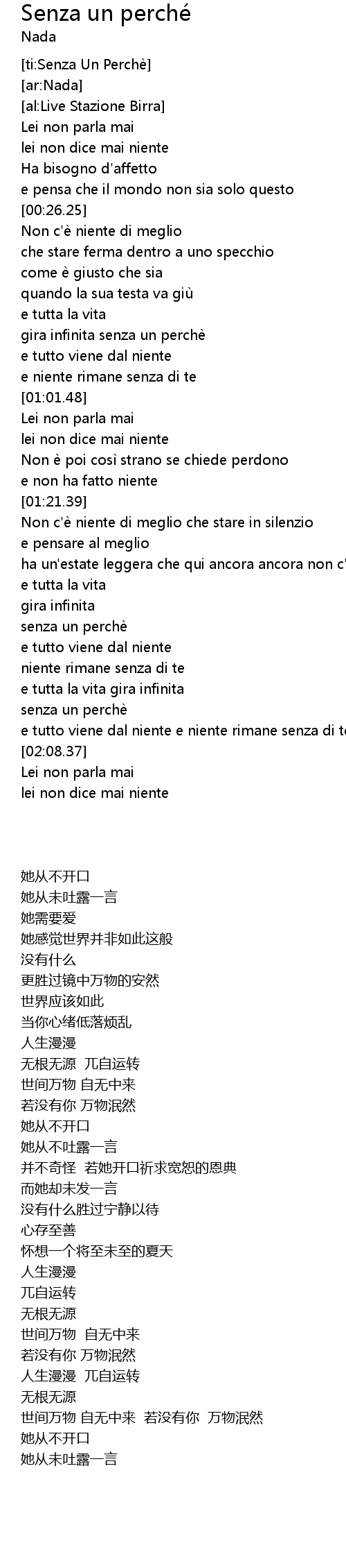 | [01:21.89] | Non c'e niente di meglio che stare in silenzio |