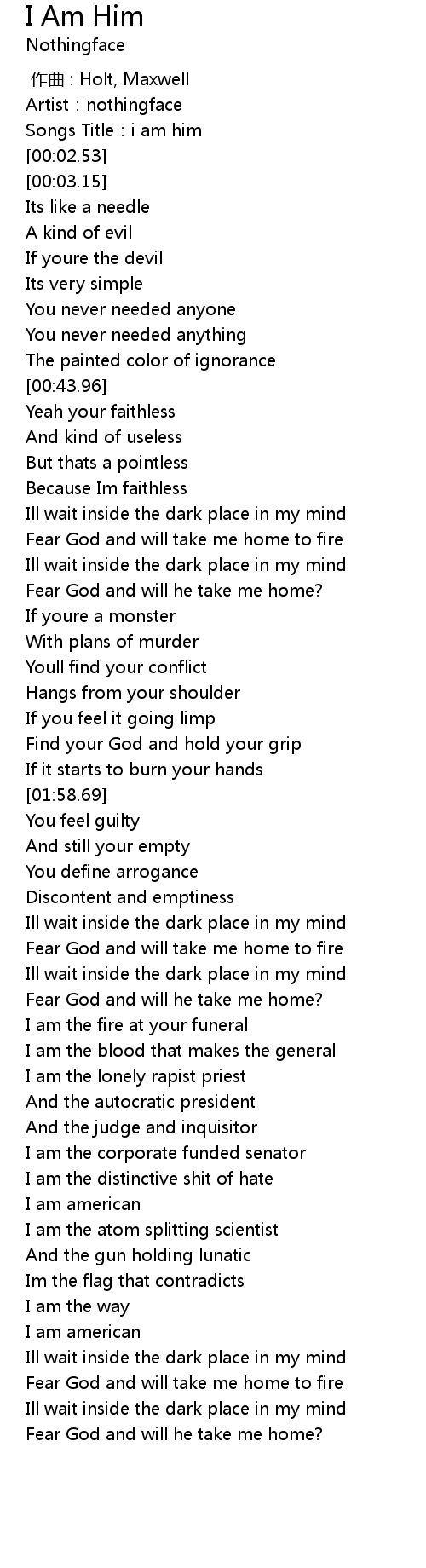 | [00:01.34] | Songs Title: i am him |
