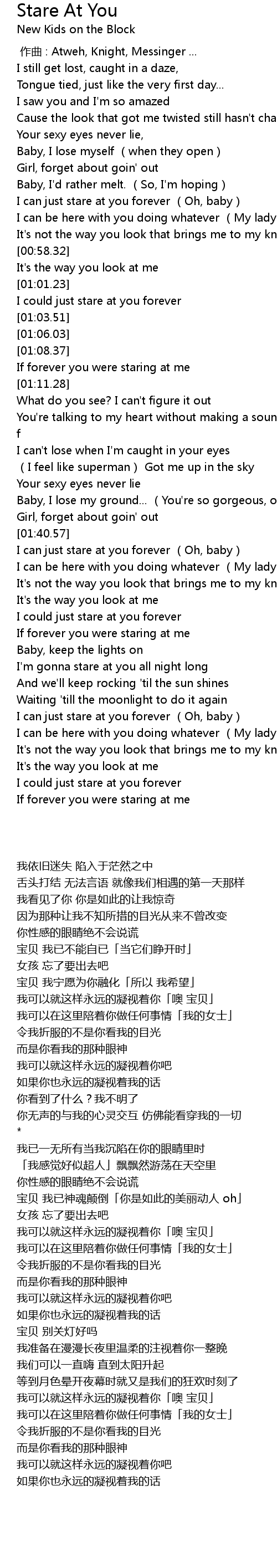 | [00:38.42] | I can just stare at you forever Oh, baby |