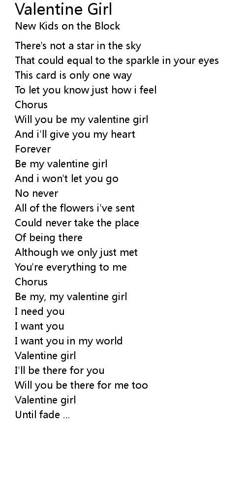 Be my, my valentine girl |