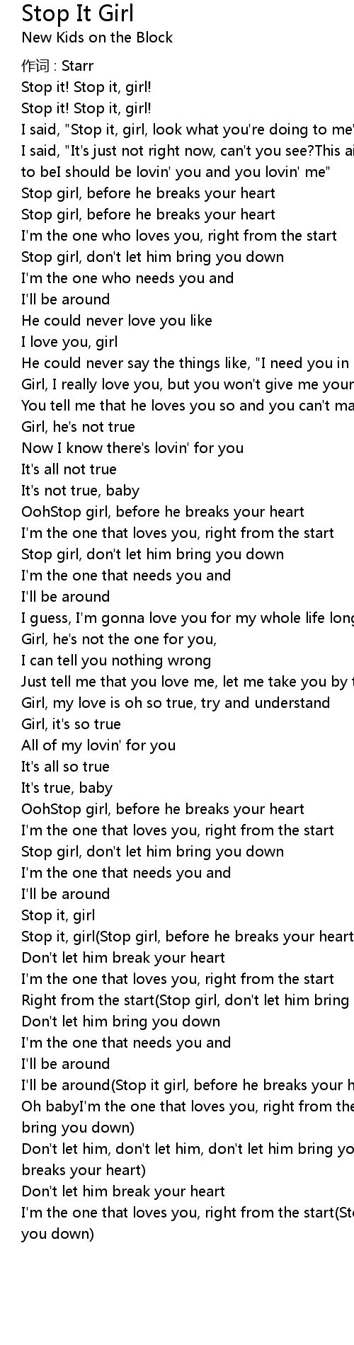 | I' m the one that loves you, right from the start Stop girl, don' t let him bring you down |