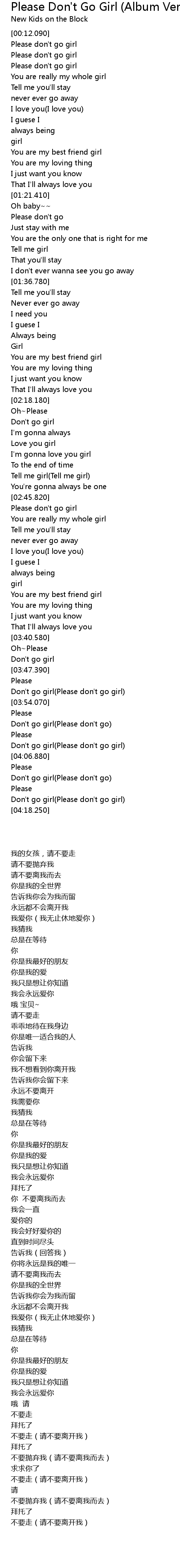Don't go girl(Please don't go girl) |