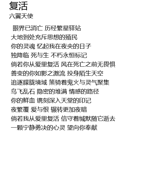 | 倘若你从爱里复活 风在死亡之前无畏惧 | |
