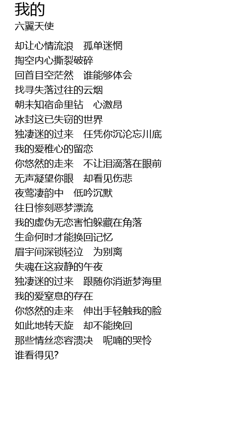 | 独凄迷的过来 跟随你消逝梦海里 | |