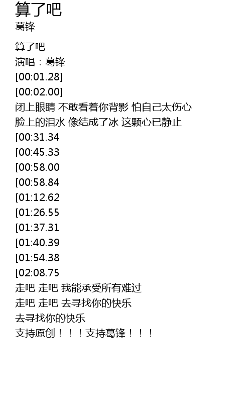 | [05:20.73] | 支持原创!!!支持葛锋!!! |
