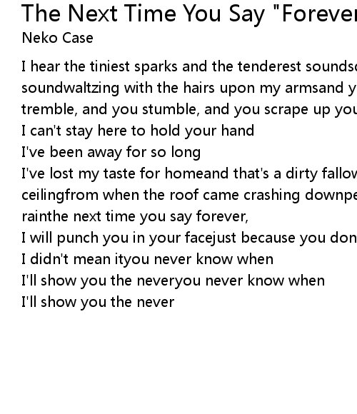 I've lost my taste for homeand that's a dirty fallow feelingto be the dangling ceilingfrom when the roof came crashing downpeeling in the heatvanish in the rainthe next time you say forever, |