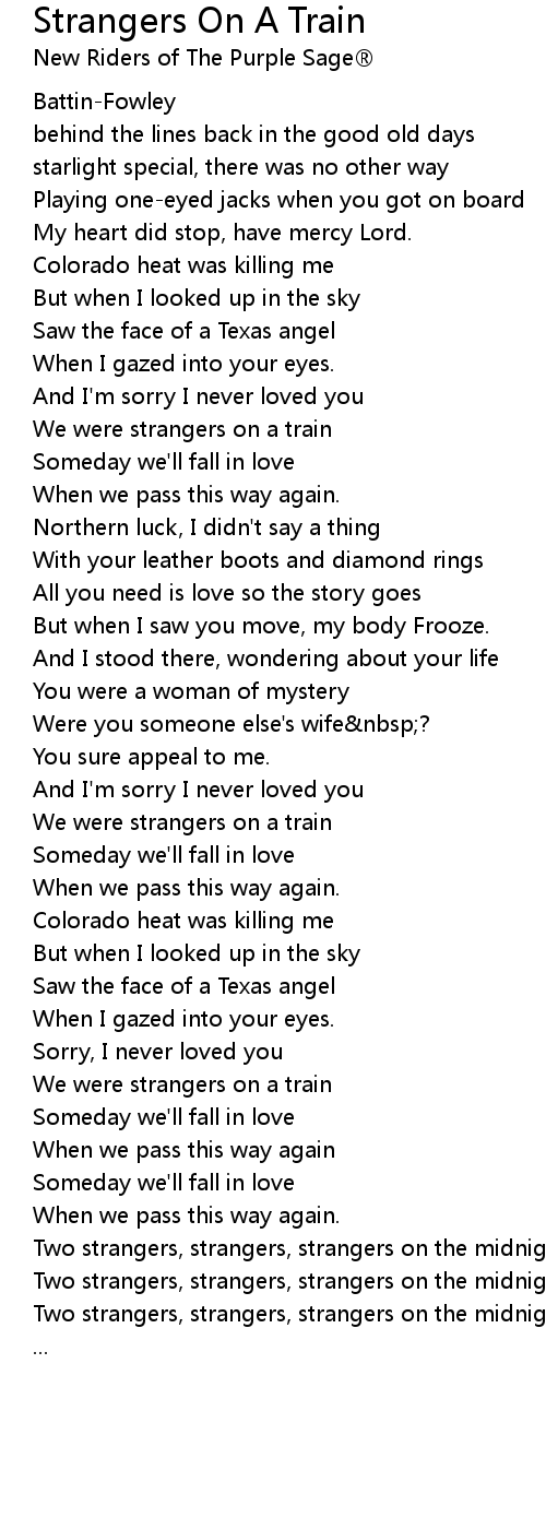 Two strangers, strangers, strangers on the midnight train |