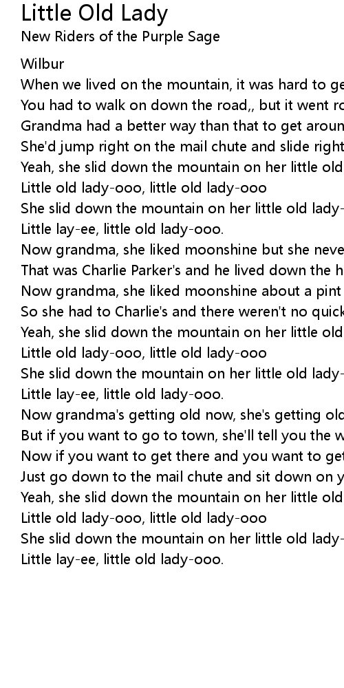 Yeah, she slid down the mountain on her little old lady-ooo |