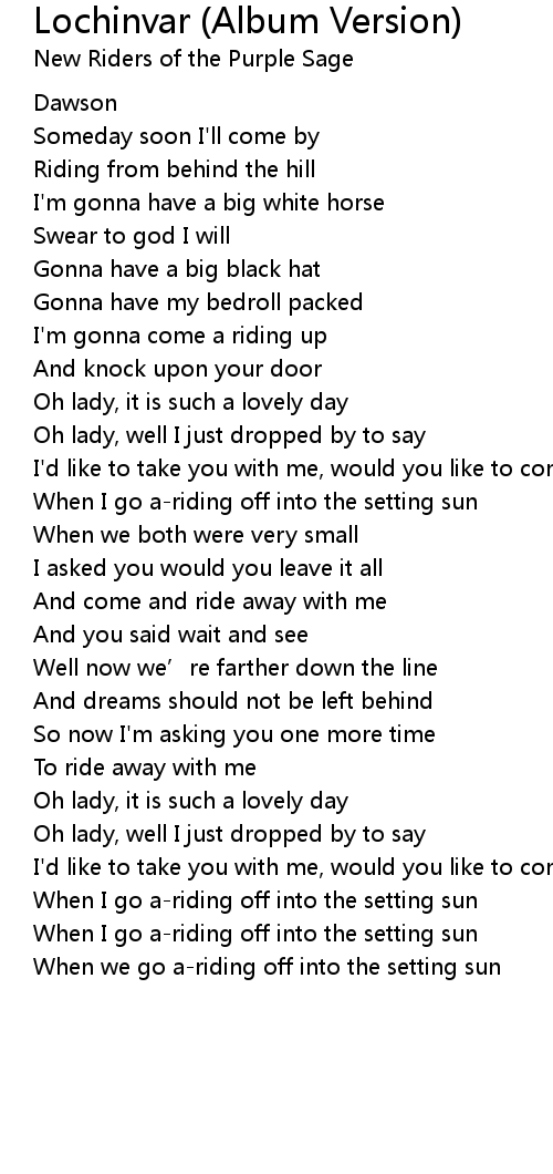 | Song | Lochinvar (Album Version) |