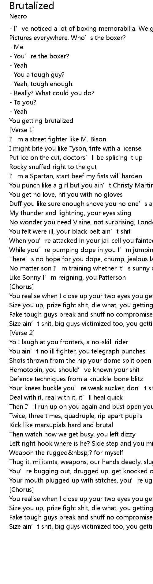 | Size ain’t shit, big guys victimized too, you getting brutalized | |