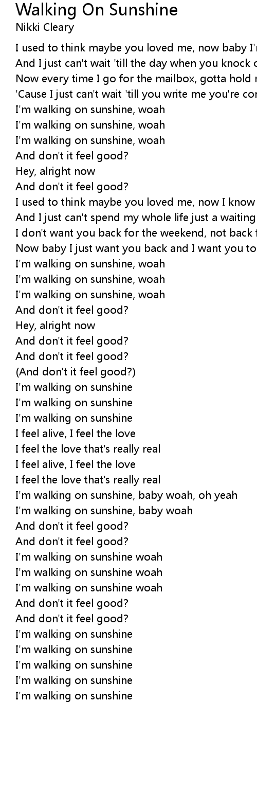 I'm walking on sunshine, baby woah, oh yeah |