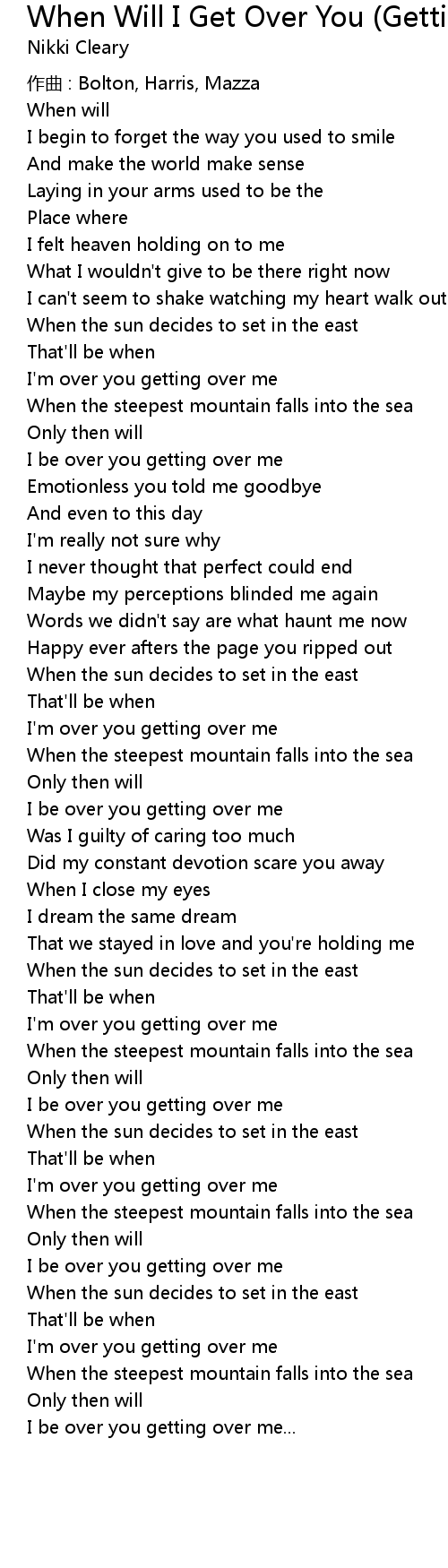 | Song | When Will I Get Over You (Getting Over Me) |