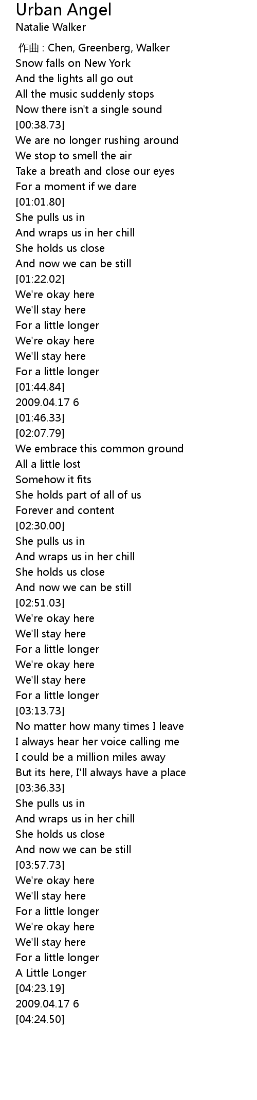 | [04:19.83] | A Little Longer |
