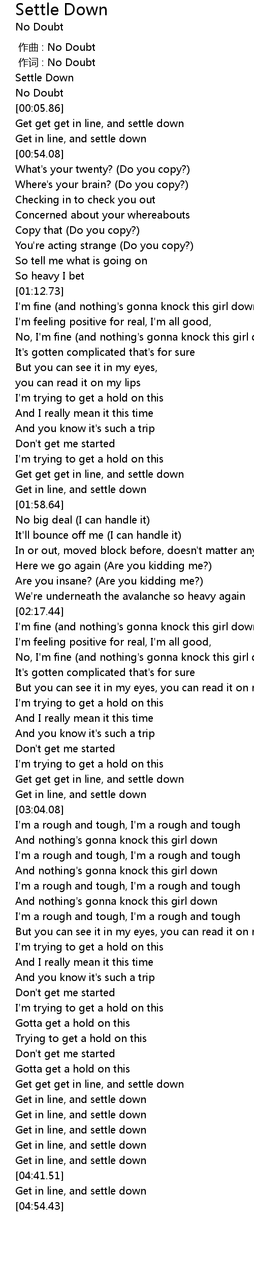 | [01:22.53] | No, I'm fine (and nothing's gonna knock this girl down) |
