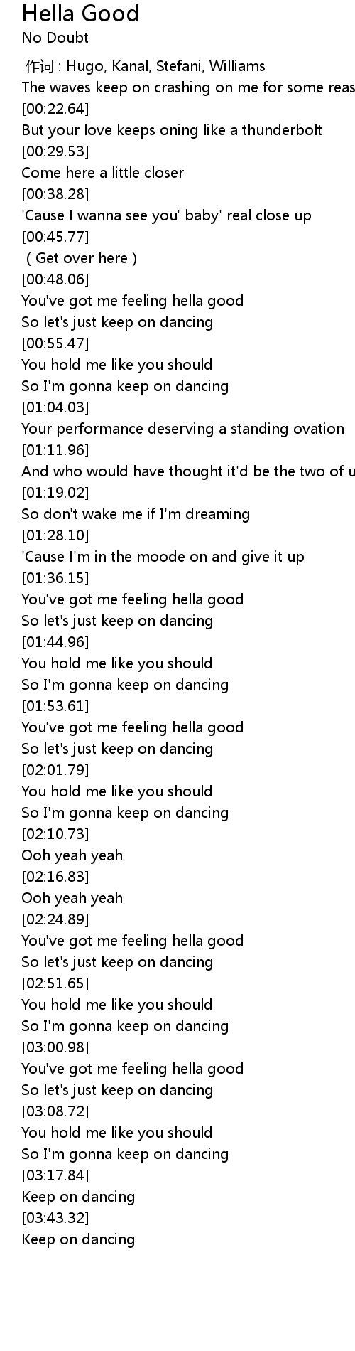 | [01:56.76] | You've got me feeling hella good |