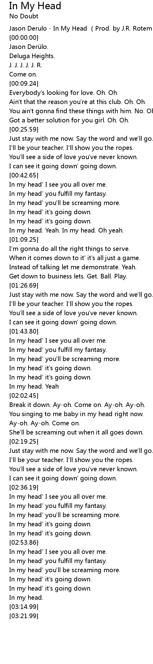 | [00:-7.52] | Jason Derulo In My Head Prod. by J. R. Rotem |
