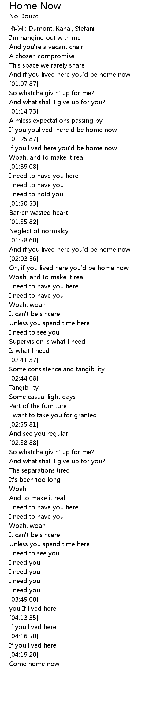 | [04:26.07] | Come home now |
