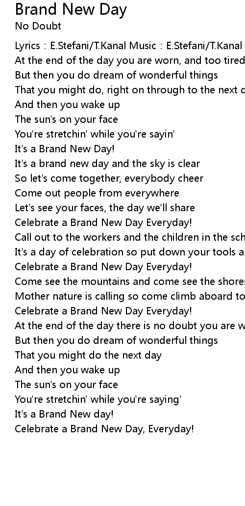 | It's a brand new day and the sky is clear | |