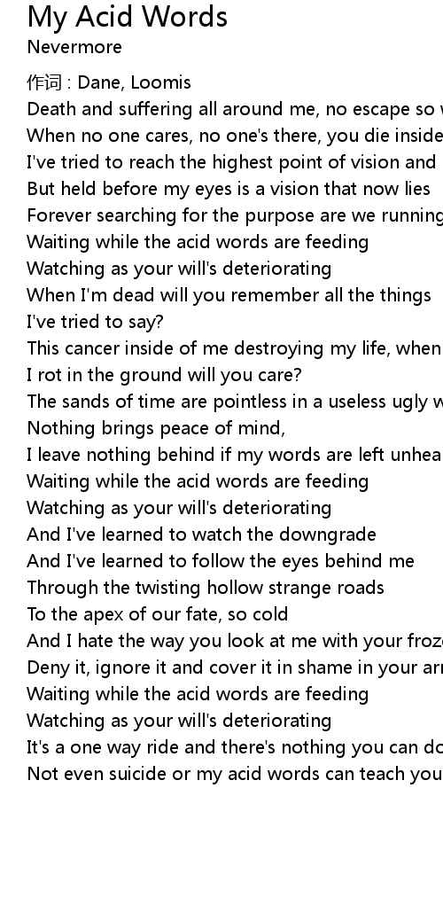 | Not even suicide or my acid words can teach you anything useful |