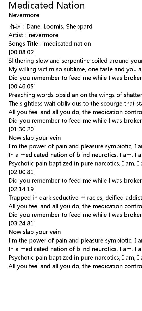 | [00:03.11] | Songs Title: medicated nation |