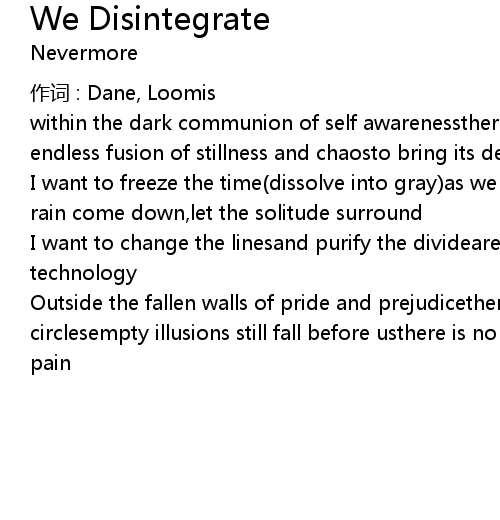 | I want to freeze the time(dissolve into gray)as we disintegrate the lightlet the rain come down,let the solitude surround | |