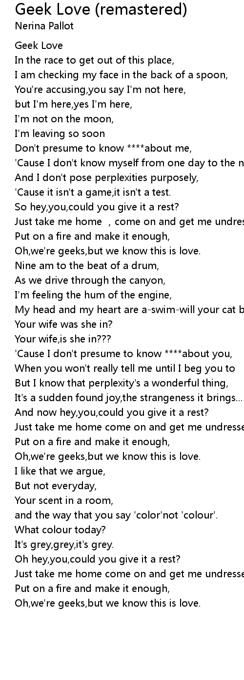 | [01:12.72] | Oh,we're geeks,but we know this is love. |