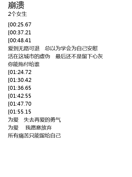| [02:55.21][01:24.72] | 就快要崩溃 |