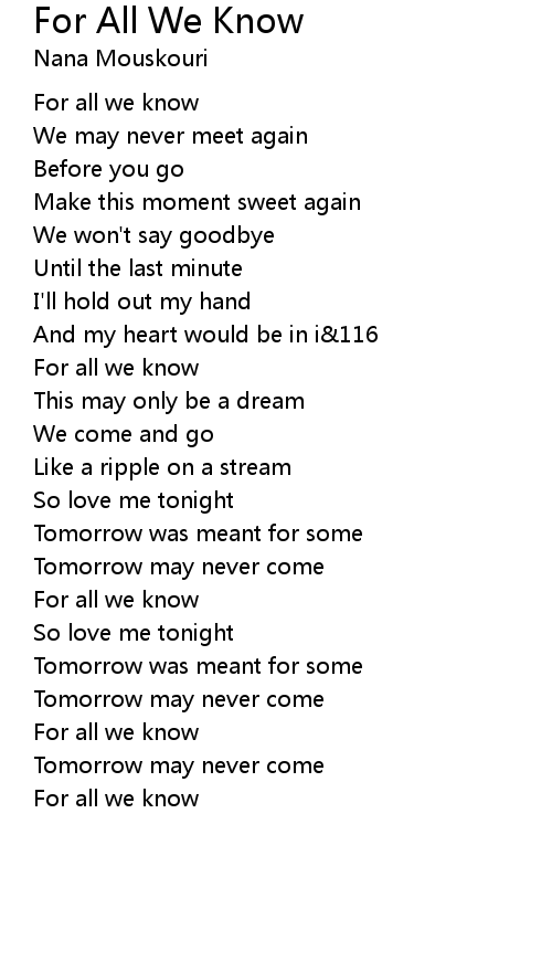 | Song | For All We Know |