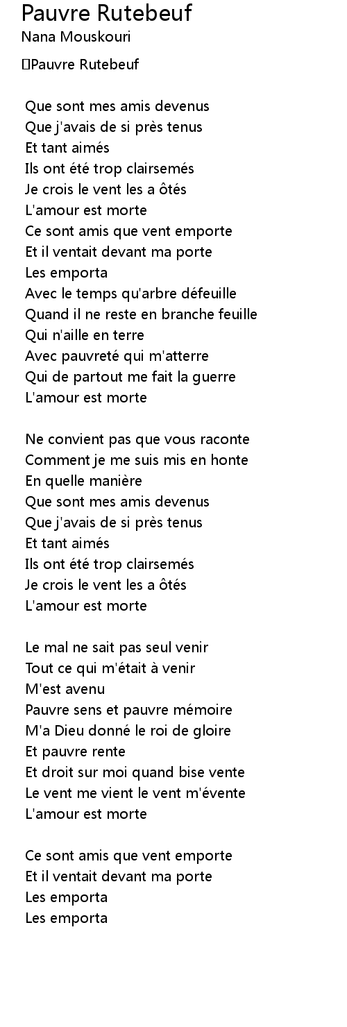 | Song | Pauvre Rutebeuf |