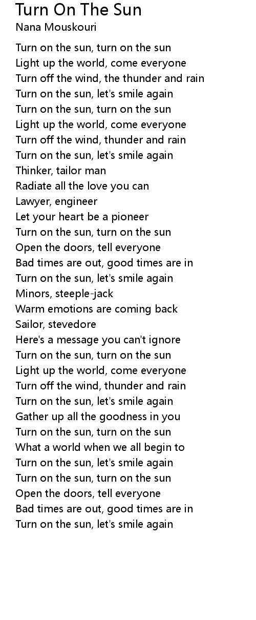 Turn on the sun, turn on the sun |