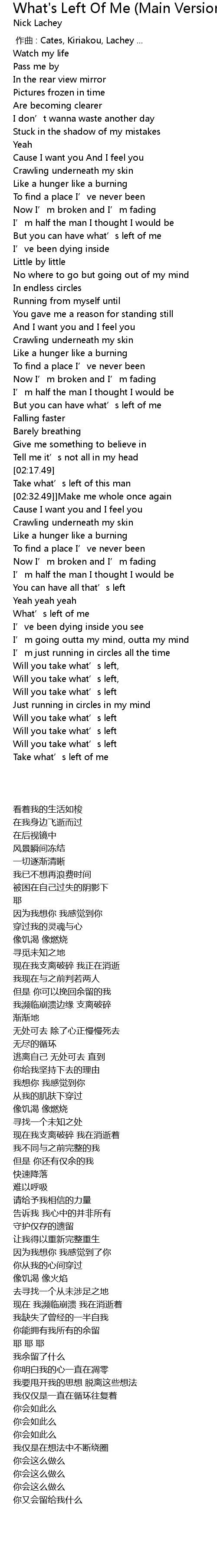 | [03:08.50] | What’s left of me |