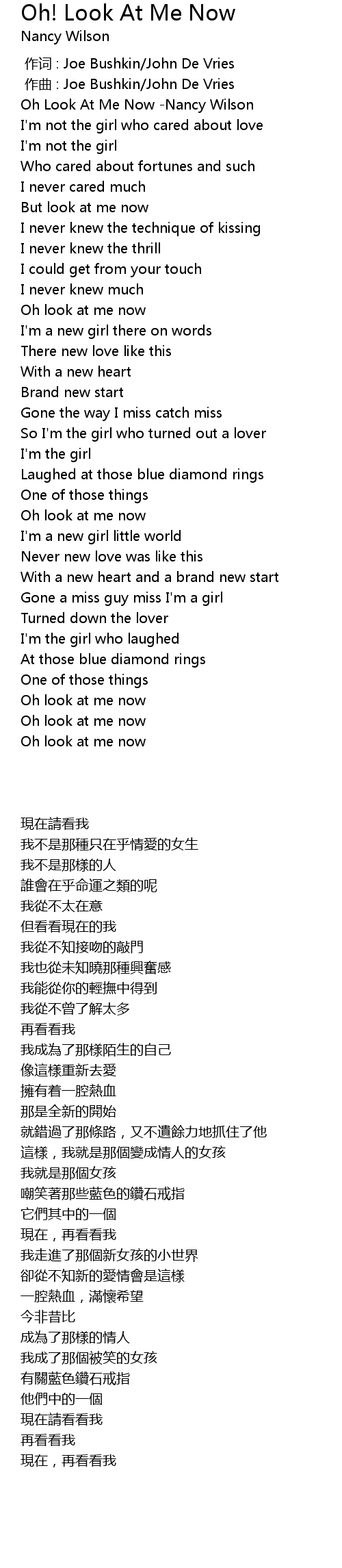 | [00:01.60] | Oh Look At Me Now -Nancy Wilson |
