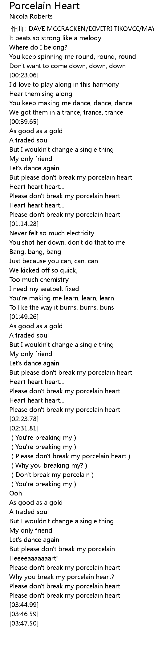 | [02:44.61] | (Please don't break my porcelain heart) |