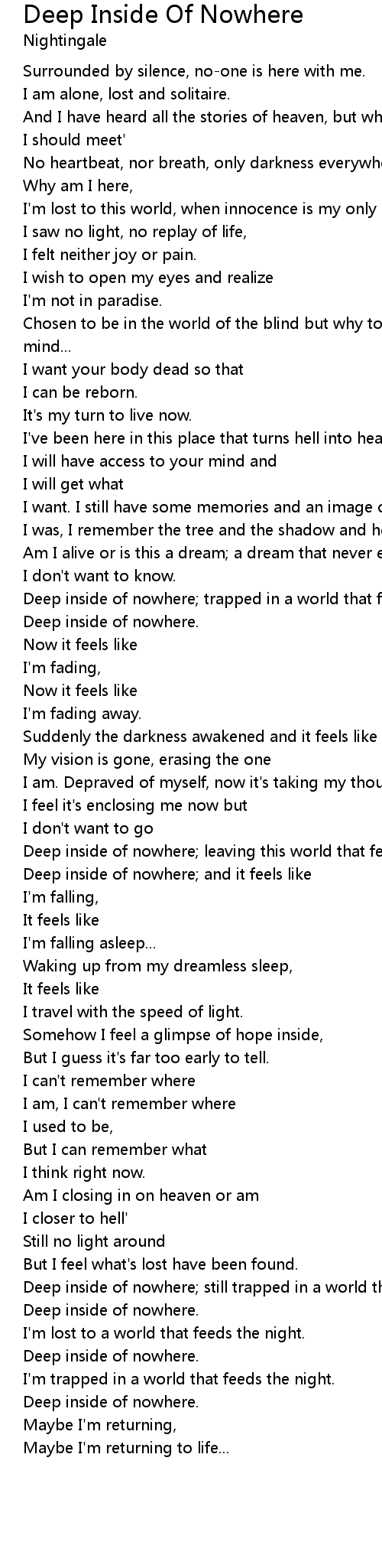 Deep inside of nowhere; leaving this world that feeds the night. |