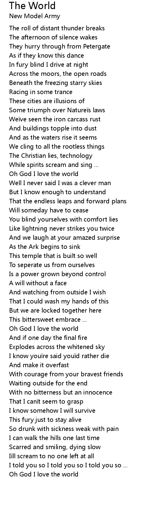 | Oh God I love the world |