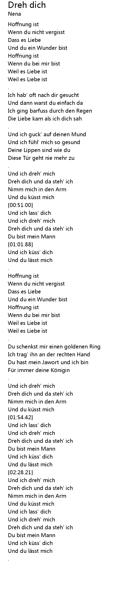 | [01:38.10] | Du hast mein Jawort und ich bin |