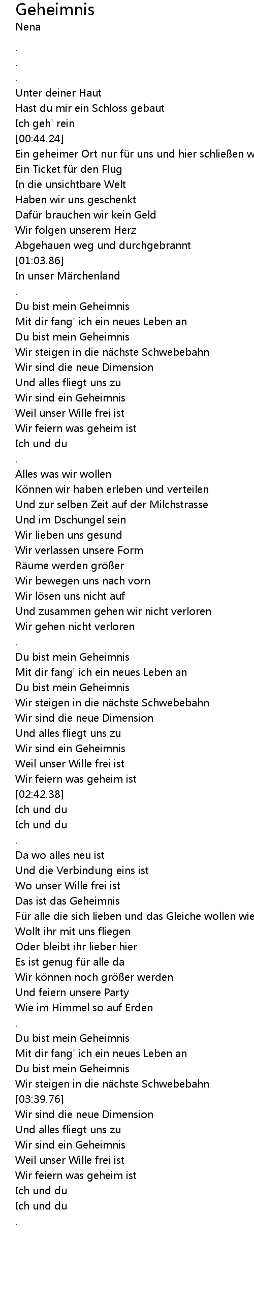 | [03:30.63] | Mit dir fang' ich ein neues Leben an |
