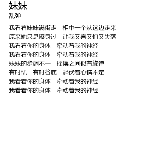 | 我看着你的身体 牵动着我的神经 | |