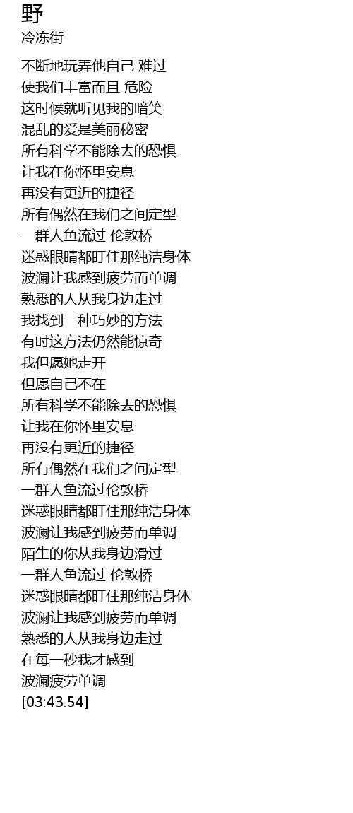 | [00:40.92] | 波澜让我感到疲劳而单调 |