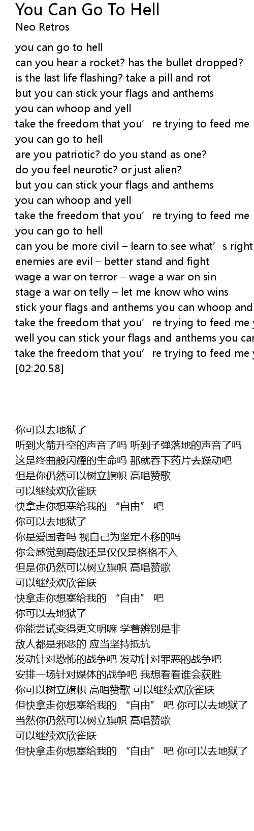 | [00:43.11] | you can go to hell |