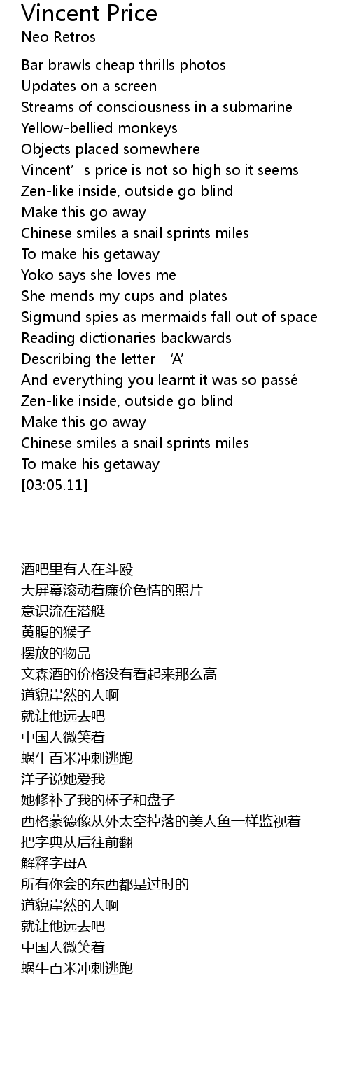 | [00:57.34] | Vincent' s price is not so high so it seems |