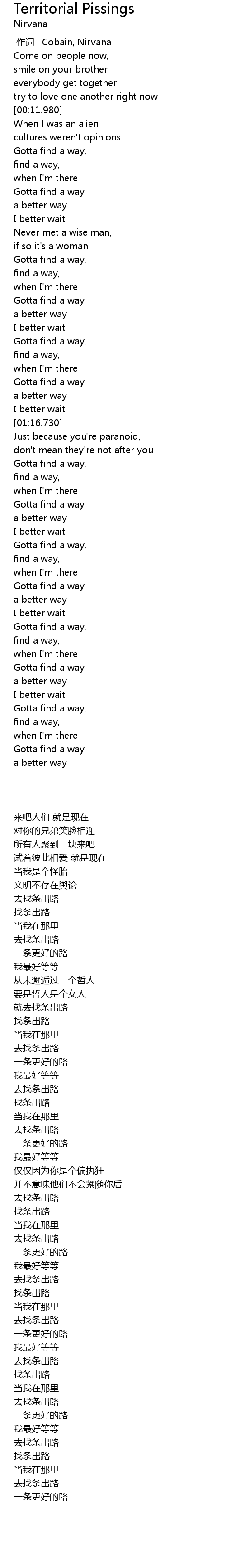 | [00:00.00] | 作词 : Cobain, Nirvana |