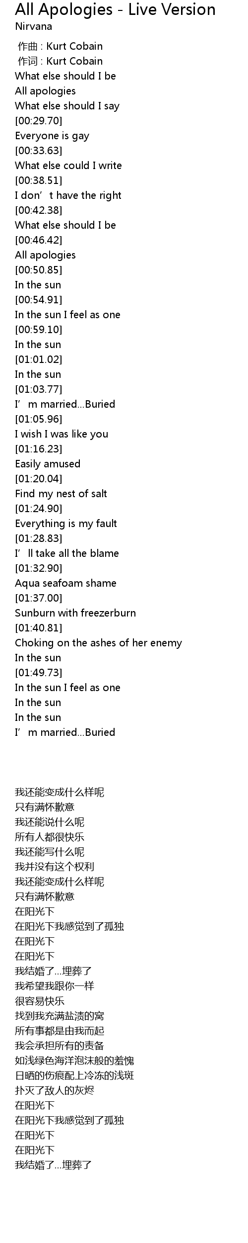 | [00:01.00] | zuò cí : Kurt Cobain |